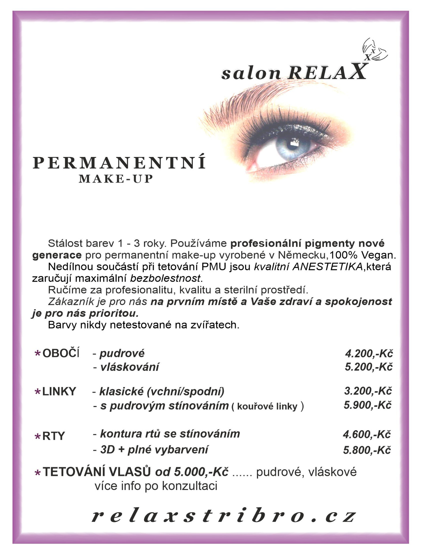- pudrová mikropigmentace - linka mezi řasami (permanentní zvýraznění řas)
